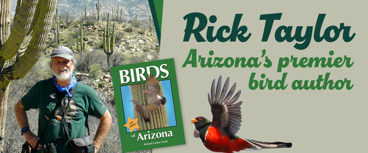 Richard Cachor Taylor is one of Arizona’s most respected birding experts and a lifelong resident southeastern Arizona. He’s the author of several essential birding guides, including Birds of Arizona, 2nd edition,the most comprehensive field guide in the state and Birds of Southeastern Arizona, 10th edition, and is known for his groundbreaking work on the Coppery-tailed Trogon and the first U.S. sighting of the elusive Eared Quetzal. As the founder of Borderland Tours, Rick has guided birders through Arizona’s most spectacular habitats for over four decades. His deep knowledge, passion for birds, and gift for storytelling have inspired thousands to connect with Arizona’s incredible avian diversity.